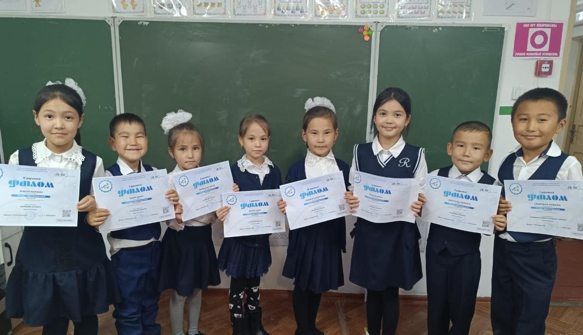17 октябрь 2023 0 1 2 3 4 5 Оқушылар жетістігі Қазақстан Республикасының оқу-ағарту министрлігі "Дарын" республикалық ғылыми-практикалық орталығының "Кенгуру" ойын-конкурусына қатысып, 2-3-4 сынып оқушылары 1-2-3 дәрежелі дипломдармен марапатталды