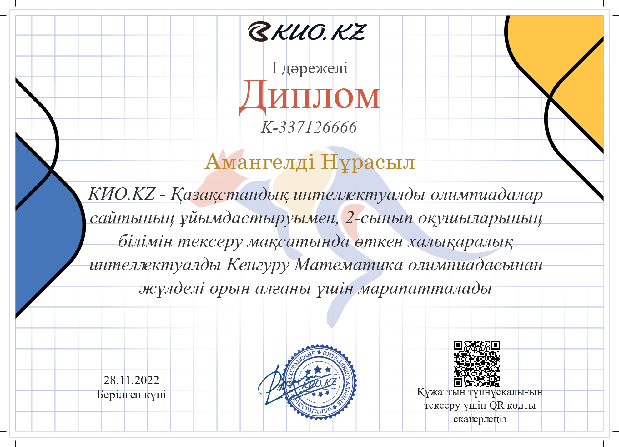 Шу қаласы Алға бастауыш мектебінің оқушылары, КИО.KZ - Қазақстандық интелектуалды олипиадалар сайысының ұйымдастыруымен интелектуалды Кенгуру математика олимпиадасына қатысып 1-2 дәрежелі дипломдармен марапатталды.